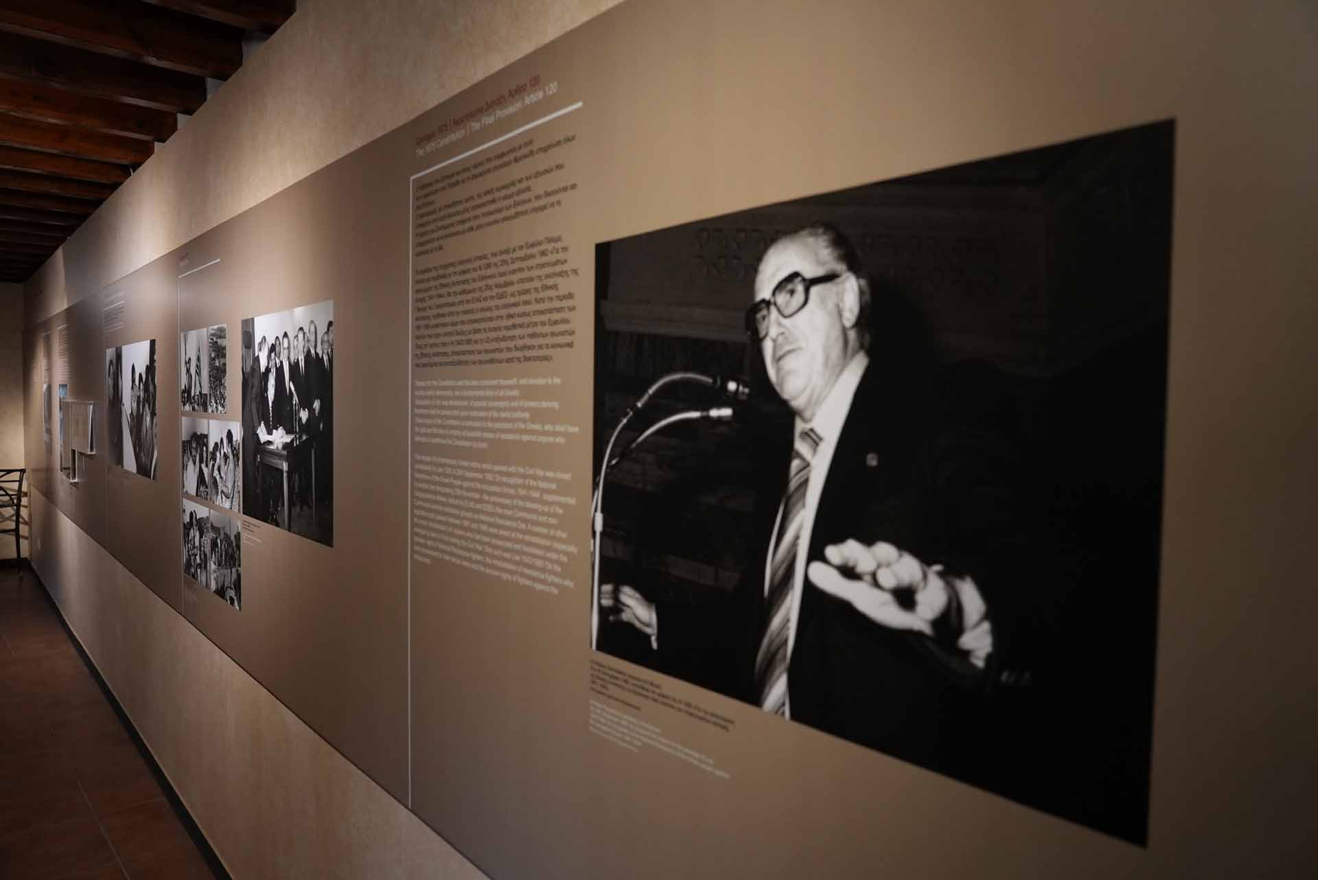 Ο χώρος της έκθεσης είναι οργανωμένος με τέτοιο τρόπο, ώστε να εξιστορεί τόσο την ιστορία του κτιρίου, όσο και την εδραίωση του νησιού ως τόπου εξορίας χρονολογικά, από την εφαρμογή του Ιδιωνύμου μέχρι και την κατάργηση των στρατοπέδων εκτοπισμού πολιτικών κρατουμένων. Ανάμεσα στα εκθέματα του, βρίσκονται εργαλεία και εξαρτήματα της καθημερινής ζωής των εκτοπισμένων, αλλά και μουσικά όργανα και έργα τέχνης που μαρτυρούν την δραστήρια καλλιτεχνική φύση αρκετών από αυτούς. Παρότι το μέγεθος του Μουσείου δεν είναι ιδιαίτερα μεγάλο, τα περιγραφικά κείμενα που συνοδεύουν τα εκθέματα βοηθούν ώστε να δημιουργηθεί στο μυαλό του επισκέπτη μία αναλυτική εικόνα του παρελθόντος του τόπου.