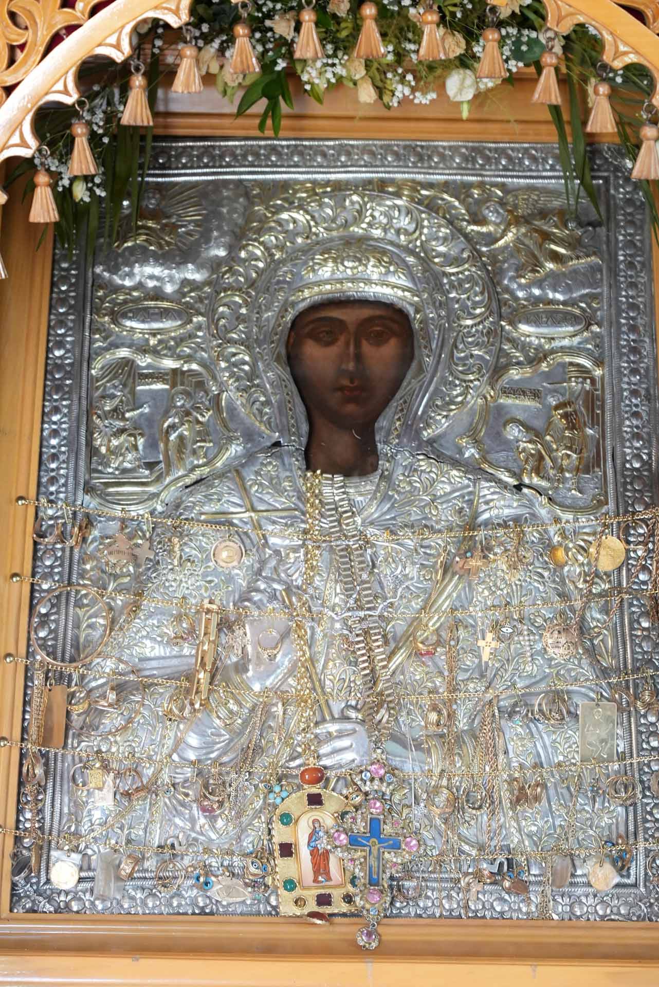 Στο ναό φυλάσσονται η εικόνα της Αγίας Παρασκευής, η οποία αγιογραφήθηκε τον 17ο αιώνα, στο Μοναστήρι που βρισκόταν στο νησί Γούνι στη χερσόνησο της Ερυθραίας. Η αργυρή επικάλυψη της εικόνας είναι έργο ενός Κωνσταντινουπολίτη, από τη συγκέντρωση ασημικών από σπίτια του χωριού, ως ένδειξη ευγνωμοσύνης επειδή βρήκε καταφύγιο στο χωριό της Αγίας Παρασκευής. Επίσης, στο ναό φυλάσσονται ένα Άγιο Δισκοπότηρο του 1970, ένα Ευαγγέλιο του 1852 που τυπώθηκε στη Βενετία, οι πολυέλαιοι, τα μανουάλια και ο Ιερός Επιτάφιος της Αγίας Παρασκευής Μικράς Ασίας, που χρονολογείται το 1800. Τα κειμήλια αυτά μαζί με σημαντικά έγγραφα διασώζουν τη μνήμη του Ελληνισμού της Μικράς Ασίας και καθιστούν τον ναό ένα μουσείο, το οποίο δίνει την ευκαιρία στον προσκυνητή να βιώσει την ιστορία του τόπου.