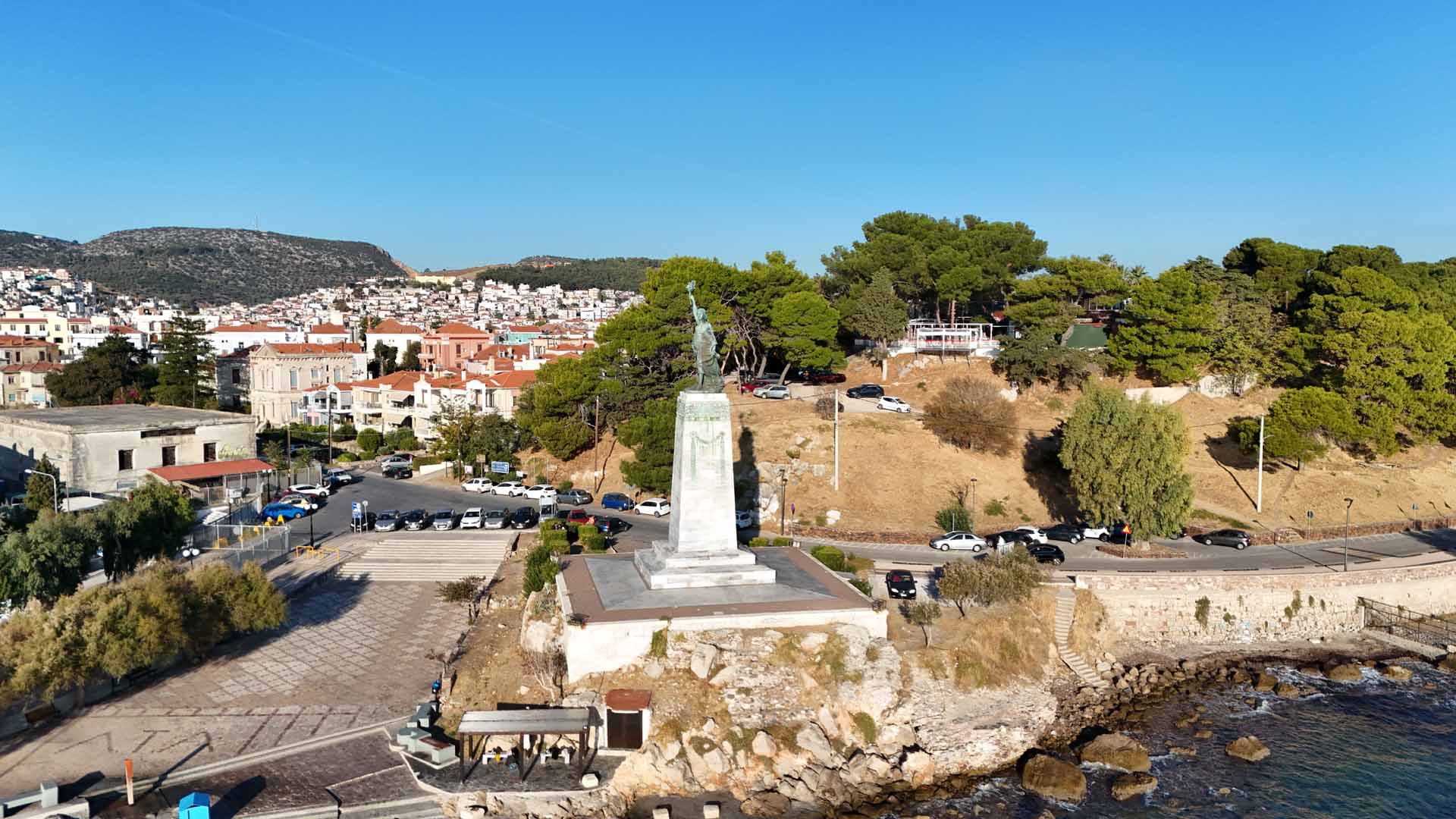 Τον Φεβρουάριο του 1919 ξεκίνησαν, επί θητείας Γενικού Διοικητή Λέσβου Ιωάννη Χρυσοβελώνη, οι προεργασίες για την ανέγερση Παλλεσβιακού Ηρώου σε σχέδιο του Αθηναίου καλλιτέχνη Γρηγόρη Ζευγώλη, το οποίο θα τοποθετούνταν στη δεξιά πλευρά της εισόδου του λιμανιού της Μυτιλήνης στη θέση μικρού προμαχώνα (Καστρέλι). Αφιερωμένο στους πεσόντες των αγώνων, θα αποτελούταν από βάση και άγαλμα που θα αναπαριστούσε προσωποποιημένη την Ελευθερία, ενώ το σχέδιο του προσώπου του αγάλματος θα φιλοτεχνούσε ο Γεώργιος Ιακωβίδης. Τελικά, για την εκτέλεση του έργου έγινε πρόταση στον αρχιτέκτονα Ερνέστο Τσίλλερ. Το αρχικό σχέδιο του Τσίλλερ προέβλεπε την διατήρηση του μικρού προμαχώνα ο οποίος στην ουσία θα αποτελούσε τη βάση όπου θα ανεγείρετο το άγαλμα. Ωστόσο, κατόπιν αρκετών καθυστερήσεων αυτό δεν συνέβη και τελικά αποφασίστηκε να κατεδαφιστεί ο προμαχώνας για να τοποθετηθεί στη θέση του το άγαλμα. Η κατεδάφισή του ξεκίνησε στις 30 Οκτωβρίου 1921 και είναι γεγονός πως προκάλεσε αντιδράσεις στον κόσμο της διανόησης της εποχής.