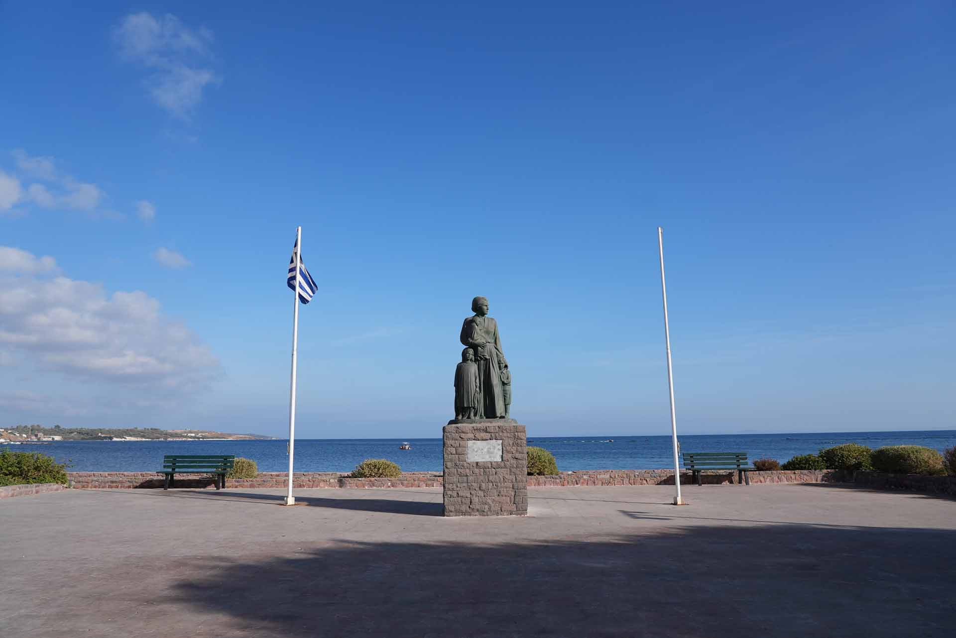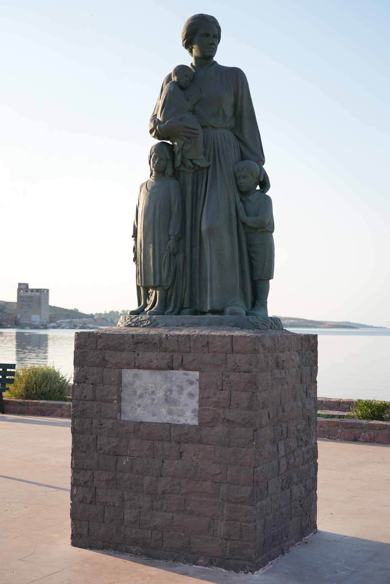 Το άγαλμα της Μικρασιάτισσας Μάνας φιλοτεχνήθηκε από τη γλύπτρια Κατερίνα Χαλεπά-Κατσάτου και βρίσκεται από το 1984 στην Επάνω Σκάλα Μυτιλήνης. Δημιουργήθηκε κατόπιν πρωτοβουλίας του Εξωραϊστικού – Εκπολιτιστικού Συλλόγου Μυτιλήνης «Η Επάνω Σκάλα» και αποτελεί σημείο μνήμης για τα θύματα της Μικρασιατικής καταστροφής. Οι πρώτες αφίξεις προσφύγων από τη Μικρά Ασία ξεκίνησαν το 1914 κατά τη διάρκεια του Α’ Παγκόσμιου Πολέμου και κορυφώθηκαν το 1922 μετά τη μικρασιατική εκστρατεία.
