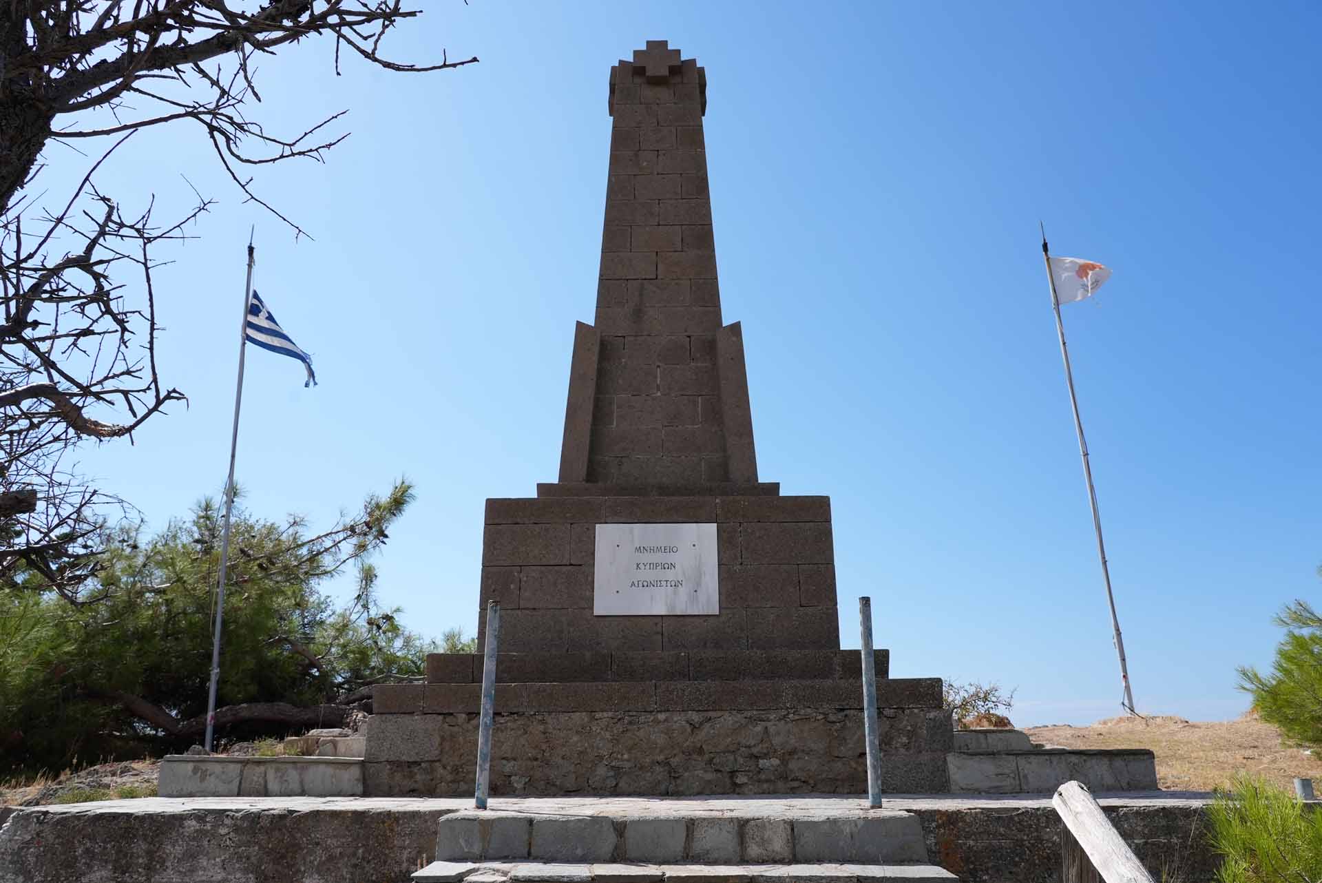Στη Μύρινα της Λήμνου, η δράση της ΕΟΚΑ γιορτάστηκε με τα εγκαίνια ενός μνημείου αφιερωμένου στους ήρωες της οργάνωσης, τον Αύγουστο του 1958. Η ανέγερση του οφείλεται στη προσπάθεια του υποστηρικτή του ενωτικού αγώνα, Μητροπολίτη Διονυσίου, ο οποίος ένθερμα κήρυττε υπέρ του ενωτικού αγώνα μέσω της Πανελλήνιας Επιτροπής Αυτοδιαθέσεως Κύπρου. Η μέρα των αποκαλυπτηρίων του γιορτάστηκε πανηγυρικά στο νησί, παρουσία του Μακαρίου και του Παπασταύρου και τεράστιου πλήθους των κατοίκων, που έδειχναν ενδιαφέρον για την κατάσταση που εξελισσόταν στην Κύπρο τη τετραετία 1955-1959, ενώ το μνημείο στέκει έως σήμερα στη Μύρινα, όπου λαμβάνουν χώρα εκδηλώσεις μνήμης και επισκέψεις από Έλληνες και Κύπριους ταξιδιώτες.