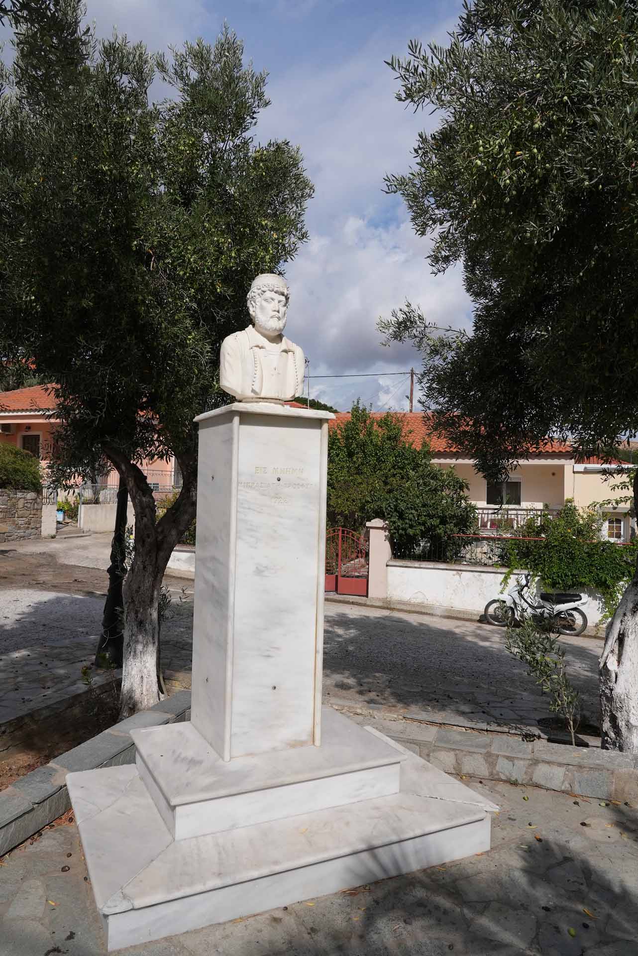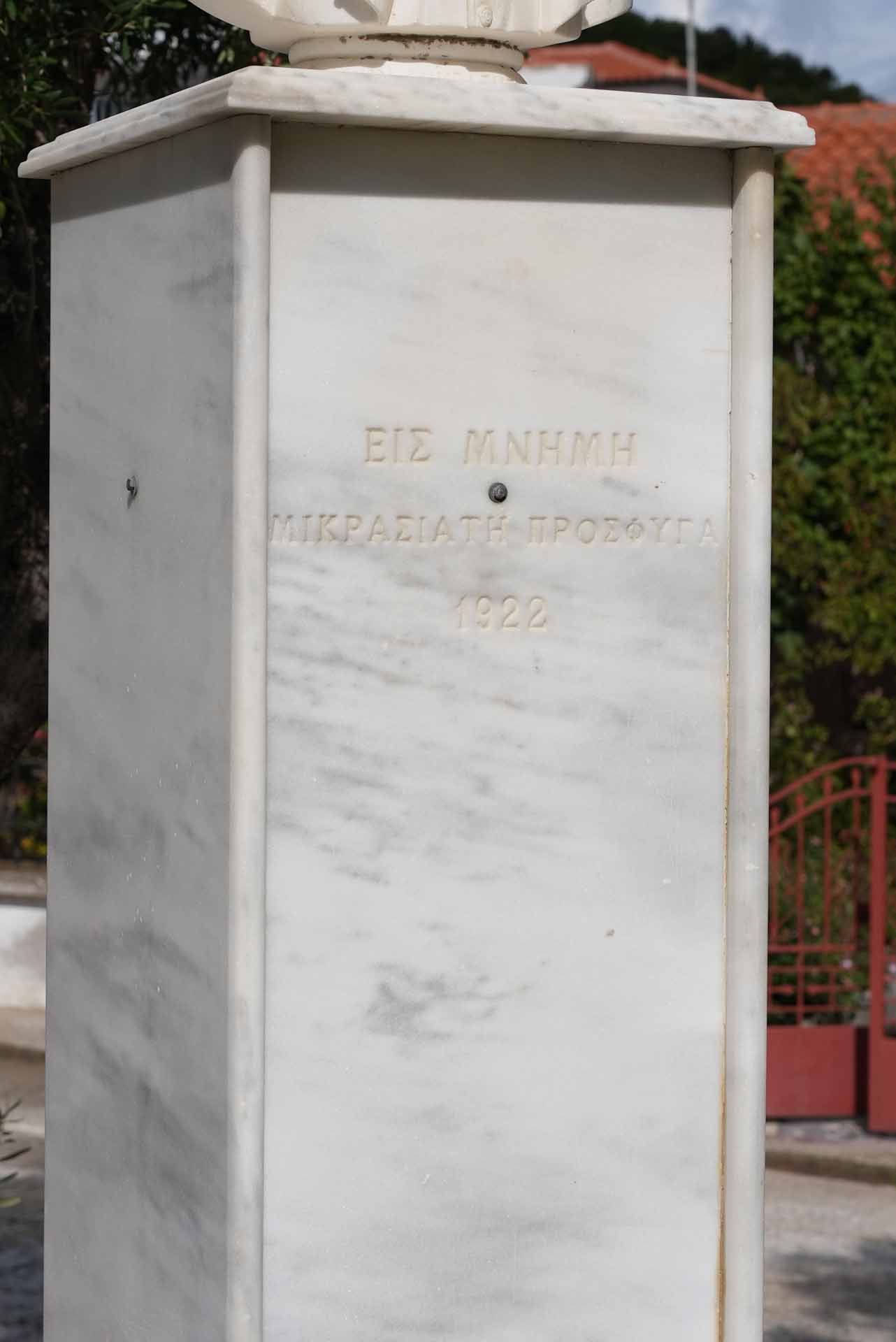 Στους δρόμους του Αγίου Δημητρίου της Λήμνου, ενός χωριού που συνεχίζει να τιμά συστηματικά τις παραδόσεις που έφεραν μαζί τους από τους τόπους τους οι πρώτοι του κάτοικοι (Μικρασιάτες πρόσφυγες), στέκεται το μνημείο του Μικρασιάτη πρόσφυγα.