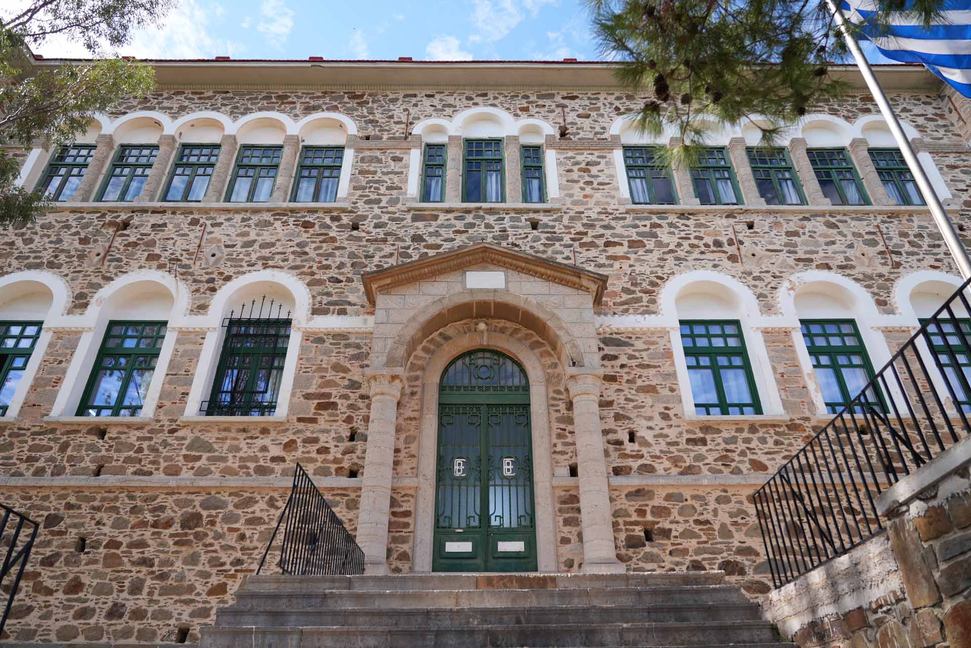 Το 1ο Γυμνάσιο Χίου στεγάζεται σε ένα νεοκλασικό διατηρητέο κτήριο στο κέντρο της πόλης και είναι από τις πρώτες σχολές του νεότερου ελληνισμού που παρείχε ανώτερη μόρφωση. Στη Σχολή λειτούργησε εμπορικό τμήμα, ανοίγοντας το δρόμο για την μεταγενέστερη ίδρυση της εμπορικής Σχολής της Χίου, ενώ η αρχαιολογική συλλογή που φιλοξενήθηκε σε αυτό αποτέλεσε τη βάση του Αρχαιολογικού Μουσείου Χίου.