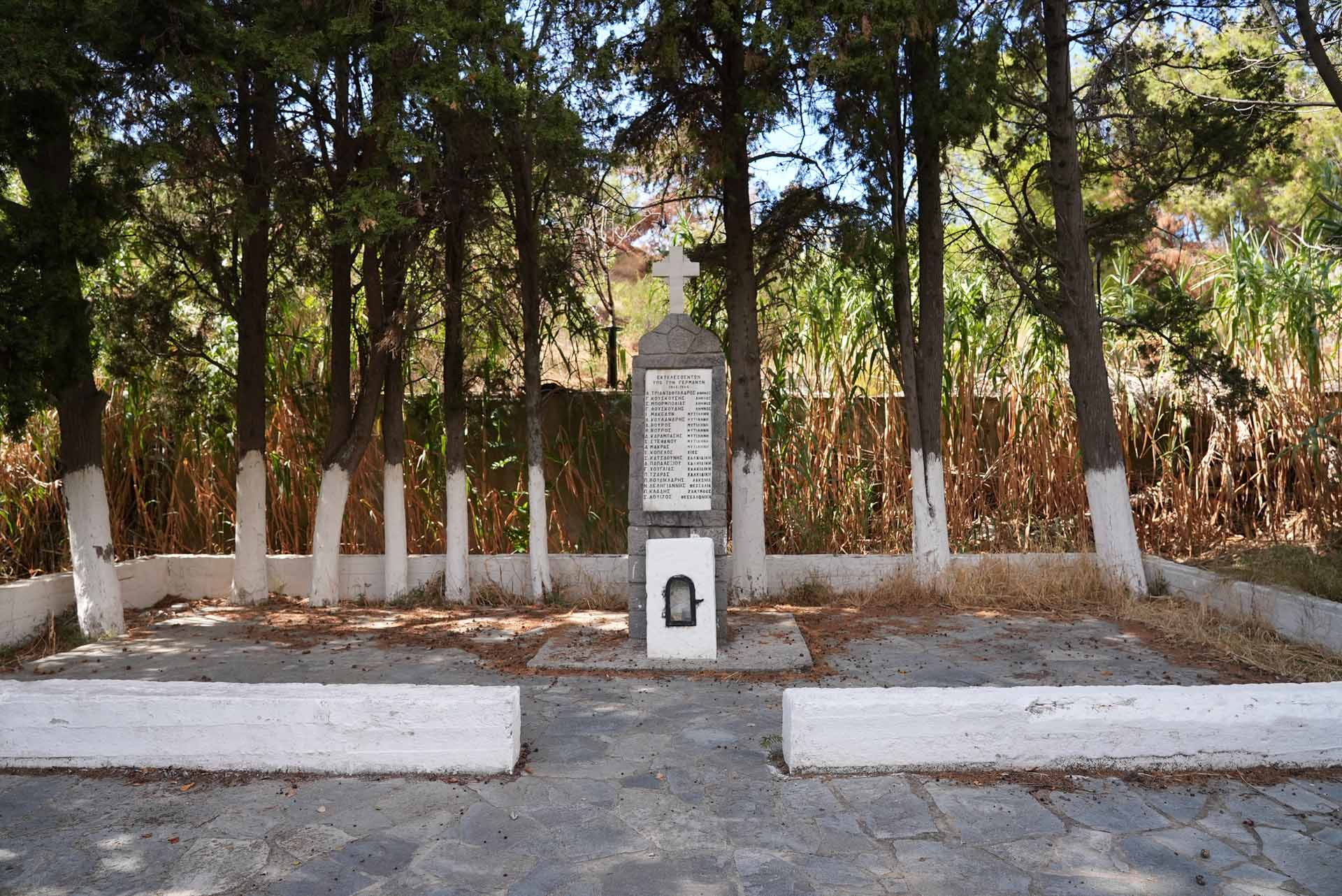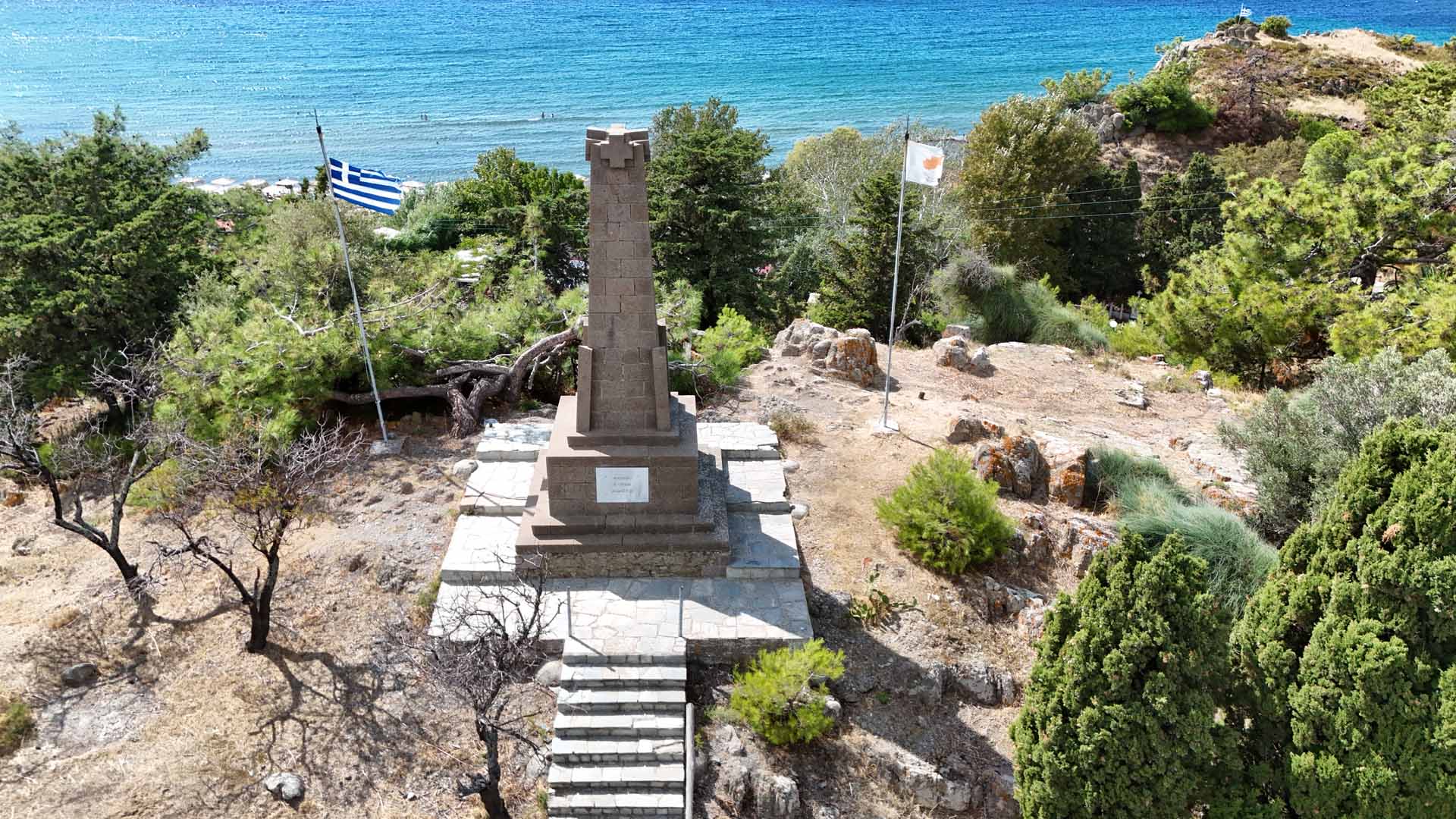 Το μνημείο προς τιμήν των ηρώων της ΕΟΚΑ (Εθνική Οργάνωση Κυπρίων Αγωνιστών) ανεγέρθηκε χάρη στον έρανο που διοργάνωσε ο φλογερός υποστηρικτής του ενωτικού αγώνα και αντιπρόεδρος της Πανελλήνιας Επιτροπής Αυτοδιαθέσεως της Κύπρου, μητροπολίτης Λήμνου, Διονύσιος. Τα εγκαίνιά του έγιναν στις 30 Αυγούστου 1958. Παρόντες, ο ιεράρχης της Κύπρου Μακάριος και ο συνεξόριστός του ιερέας, Παπασταύρος Παπαγαθαγγέλου.